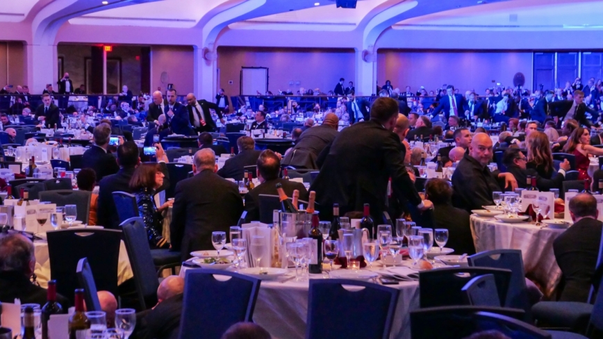 在发稿时,酒店工作人员已开始重新整理桌子、摆放餐巾。这显示晚宴还有可能继续,有可能让宾客返回座位。